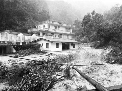 8月8日,新北市三峡多处溪水暴涨,泥石流流进一处民宅。 新华社发