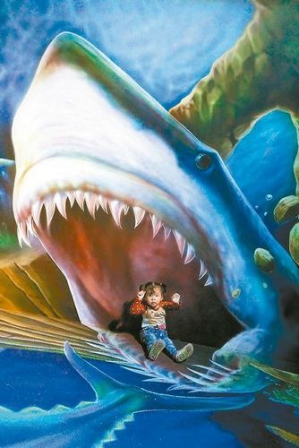 “救命啊!”小女孩一靠近墙上的鲨鱼,担心下一秒就要被吃掉,逼真的场景,让她吓得差点哭出来。