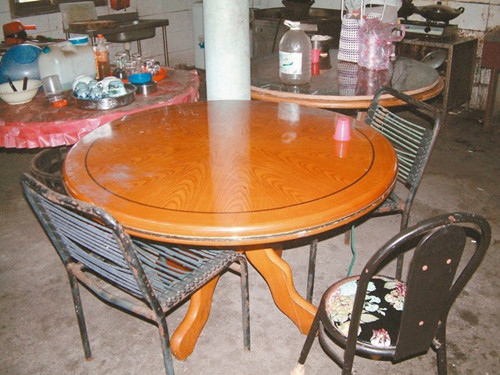苗栗县头份市叶家三合院一张五十年的桧木四角桌遭窃,窃贼还以图中的七成新圆桌替换。图自台湾《联合报》