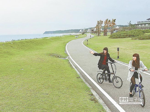 自由行的陆客,在花莲七星潭享受单车慢游乐活。(台湾“中时电子报”资料照片)