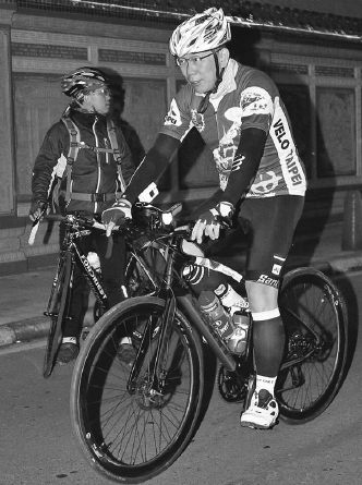 去年11月和12月分别完成一日从台北骑到新竹、从台北骑到云林的柯文哲,9日再度进行挑战,要在21小时内骑完380公里。据台湾《中国时报》10日报道,9日清晨5时多,他从台北关渡宫出发,几名民进党、亲民党及无党籍“立委”候选人现身为他打气。台北市政府幕僚准备多项补给品,其中自行车是厂商赞助的特制款,价值约15万元新台币。按照规划,全程设置16个休息站,做到“四不、一务必”,即沿途不致辞、不堵麦(用麦克风堵住采访对象)、不单独合照、不签名、务必准时离开。不过9日晚到达嘉义县布袋镇时,柯文哲不仅帮支持者签名,还与现场群众拍照。