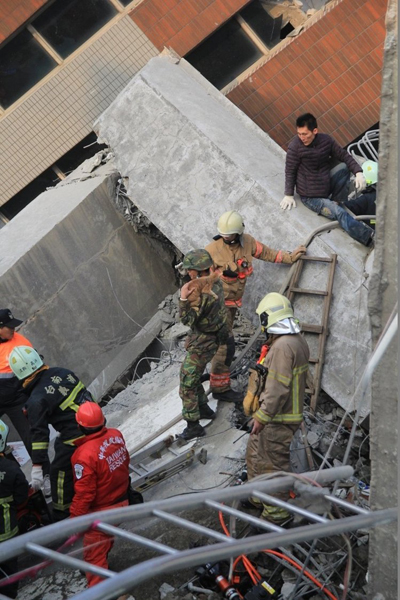 中国台湾网2月6日讯 台湾南部今天凌晨发生6.7级地震。台南市灾情惨重,永康区维冠大楼发生坍塌,16层楼瞬间倒成4层楼。一头名叫“喵喵”的公猫,地震后一直守在小主人身旁,用叫声唤来消防队员救援。消防队员表示,在搜救过程中,一直听到猫叫声,找到一只公猫趴在窗框,里面还有一个小男生。