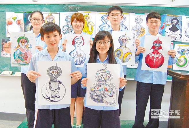 嘉义高中美术班结合时事、美学教育,由高一学生自由创作福禄猴。(图片来源:台湾《中国时报》)。