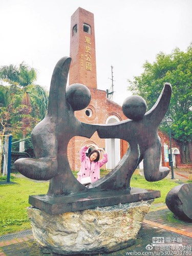 一位自由行陆客在集集火车站前留下美丽倩影。(取自微博@台湾自由行)