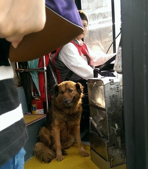 中国台湾网4月21日讯 据台湾《联合报》报道,社交网站脸谱网上一名陈姓网友发文表示,今(21日)晨在新北市泰山区,搭乘918路公交车指南客运时,看见一只大狗坐在司机旁,而司机不断向乘客道歉表示不好意思,偶尔还会伸手安抚大狗。这条大狗则安定地端坐在司机身旁,不吵不闹。