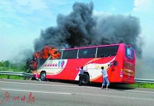 广州消防部门表示,当乘坐的公交车发生火灾时,千万不要惊慌失措,寻找最近的出路,比如门、窗等,找到出路立即以最快速度离开车厢。