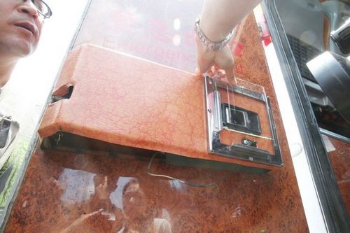 红珊瑚车队同款游览车的安全门锁,正常开启方式,是得先取下压克力板,才能开启开关。(图片来源:台湾《联合报》)