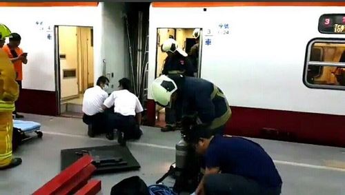 台北市消防局获报,台铁107次自强号9月9日早上7时36分通过万华站东主正线时,有一名女性旅客从月台掉落至路线内,遭列车撞击。来源:台湾“中央社”