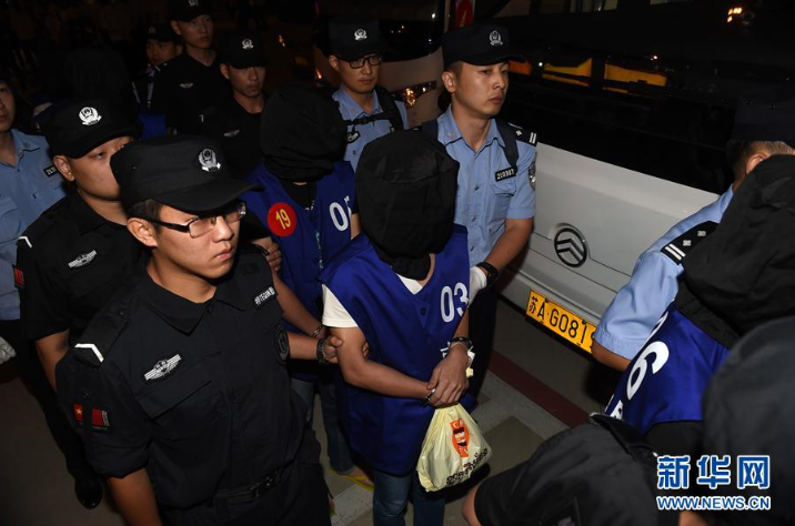 9月20日,警员押解犯罪嫌疑人准备登上大巴车。当日20时许,随着一架中国民航包机降落在江苏省南京市禄口机场,63名电信网络诈骗犯罪嫌疑人,被中国大陆公安机关从柬埔寨押解回国。近日,柬埔寨移民总局根据公安部赴柬工作组提供的相关线索,在该国首都金边捣毁一处电信网络诈骗犯罪窝点,抓获63名犯罪嫌疑人,其中大陆50人、台湾13人,缴获电话座机、电脑、语音网关、对讲机、诈骗剧本等一批作案工具。柬方随即将案件相关情况通报我方。经初查,该犯罪团伙冒充公检法机关,大肆向中国大陆居民拨打电话实施电信网络诈骗,具体案件数量和涉案金额正在进一步核查中。新华社记者韩瑜庆摄