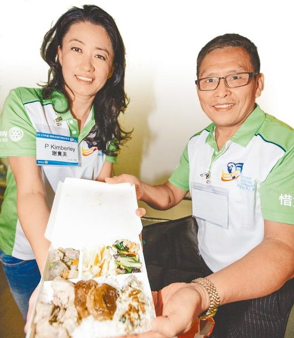 “惜食台湾行动”,分别向各界募集资金与食材,由寰宇国际的爱心厨房制成餐盒,最后由扶轮社友排定送餐轮值表,与里长一同送餐。(郭吉铨摄)