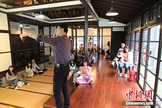 这是台北市济南路2段25号,门口挂着“齐东诗舍”的牌子,门敞开着。进了大门,左右两边各一栋日式房子,朝着有灯光的右边一栋推门进去。玄关处一工作人员马上迎了上来,让签名,原来里间正在举行一个讲座。