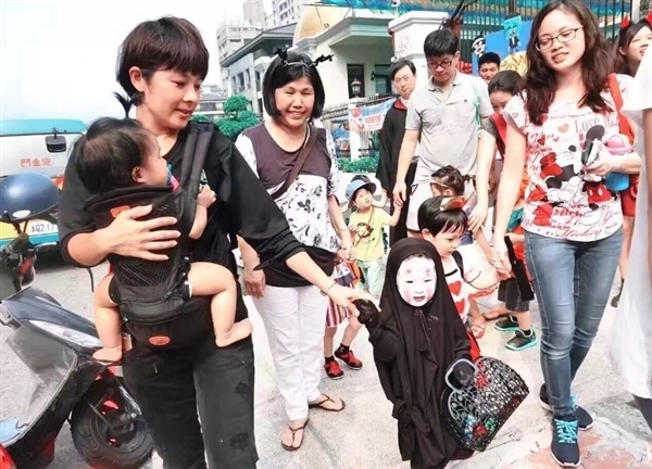 据悉,在幼儿园万圣节Party上,一位小女孩被麻麻打扮成了《千与千寻》中的鬼怪“无脸男”,看的出麻麻很认真,效果十分逼真,简直出神入化。