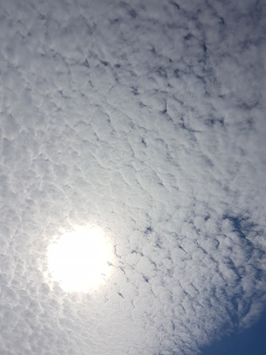 据台湾联合新闻网报道,7日是24节气中的立冬,天气却仍炎热,宜兰县南方澳中午天空出现一大片整齐排列的云层,乍看像极了“菠萝面包”,吸引许多民众驻足拍照,啧啧称奇。