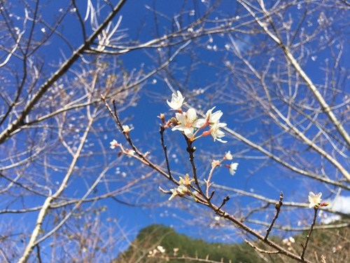 据台湾联合新闻网报道,台湾原生特有种“雾社山樱”每年2月下旬至3月中旬为开花期,不过受暖冬及10月台风的影响,南投县奥万大森林游乐园区的雾社樱却提早开花,园区表示,以往都是绯寒樱、八重樱先开,雾社樱最晚,没想到这次却提早了4个月,这种情况很少见。