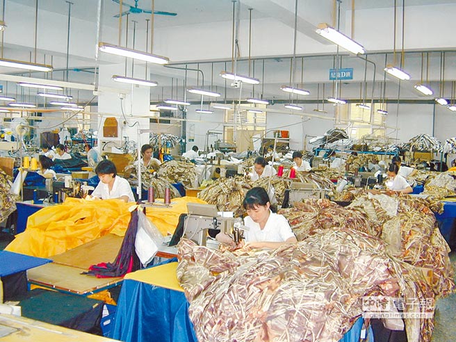 “一例一休”新规通过,传统产业为避免成本增加,只好尽量不要加班,图为风雨衣生产工厂员工忙碌赶工。(图片来源:台湾《中时电子报》)