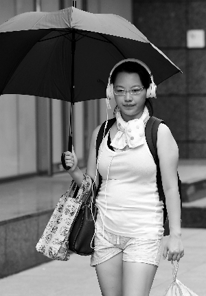 走在台北街头,处处可见着短裙、打阳伞的年轻女孩(如图),即便是畏寒的老人家也只是披一件较轻薄的外套。
