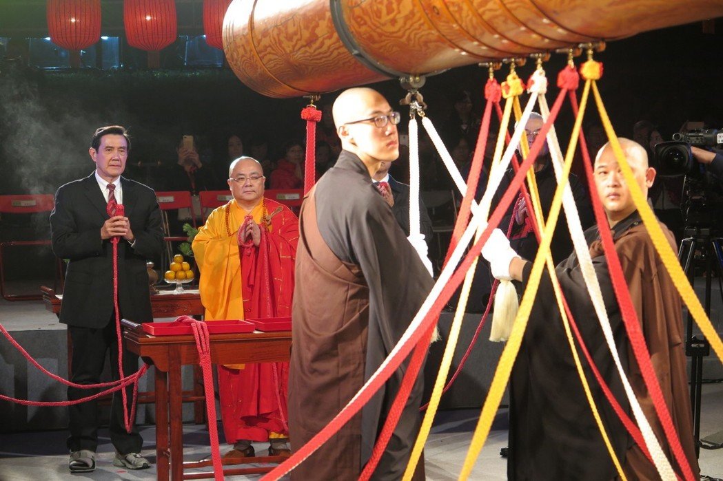 马英九连续十年参加法鼓山除夕撞钟仪式。(图片来源:台湾《联合报》)