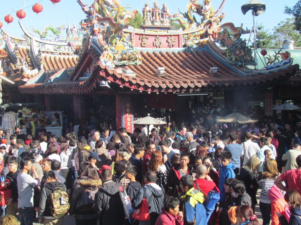 中国台湾网1月28日讯 供奉土地公的南投县紫南宫是台湾人求财必拜的地方。紫南宫每逢新年都发放硬币,每人一枚,被称为能生钱的“钱母”。今年1月1日阳历新年时,紫南宫便吸引4万台湾民众排队领“钱母”。今天(28日)适逢农历大年初一,据台湾《联合报》报道,紫南宫竟吸引5万多名信众前来,排队人龙长达7公里,俨然成为新年一景。