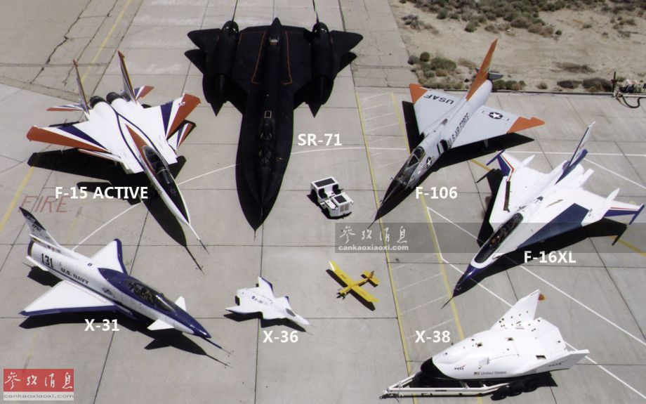 图为F-16XL与NASA的众多著名试验机合影。