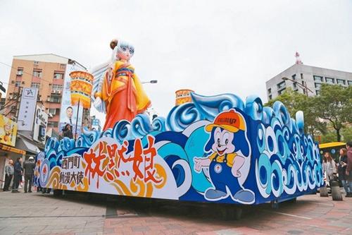 据台湾《联合报》报道,2017台北灯节明天(4日)登场,首度移师西门红楼,并在元宵节当天举办“西城嘉年华大游行”,总计60组、1500位表演者参加,最大亮点是8米高、10米长、5米宽的动漫版林默娘(妈祖)花车,昨天已悄悄在中华路亮相,吸引民众争相拍照。