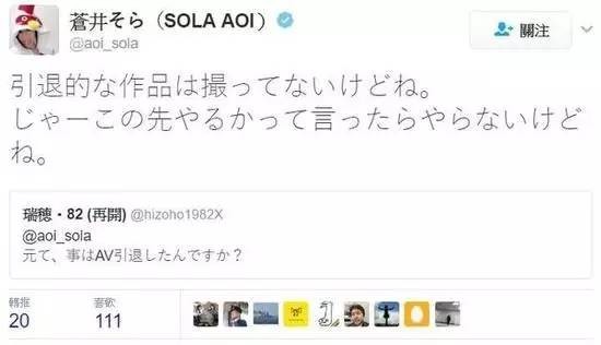 据台媒报道,苍井空近日在推特上的留言说她已“不再具有AV女优的身份”,彻底粉碎了引退作的可能,正式宣布从AV界退出江湖。