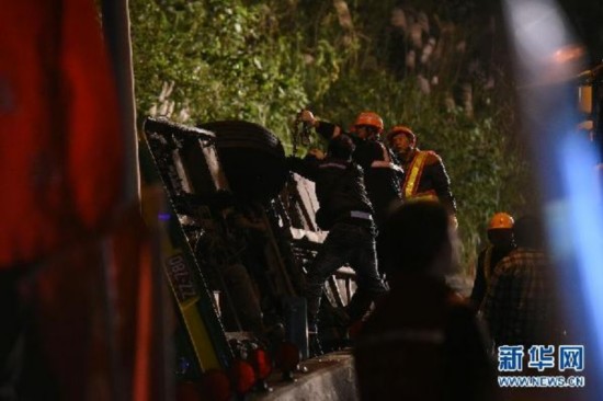 这是2月13日晚拍摄的事故救援现场。新华社记者欧东衢摄