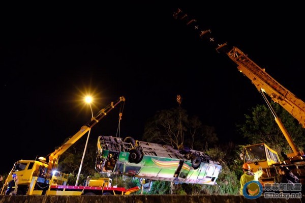 台湾“2.13”游览车高速公路翻覆,造成33人罹难、11人轻重伤。(图片来源:台湾“东森新闻云”)