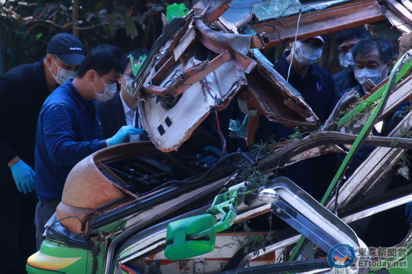 台湾检方勘验事故车辆,怀疑司机疲劳驾驶酿祸。(图片来源:台湾“东森新闻云”)