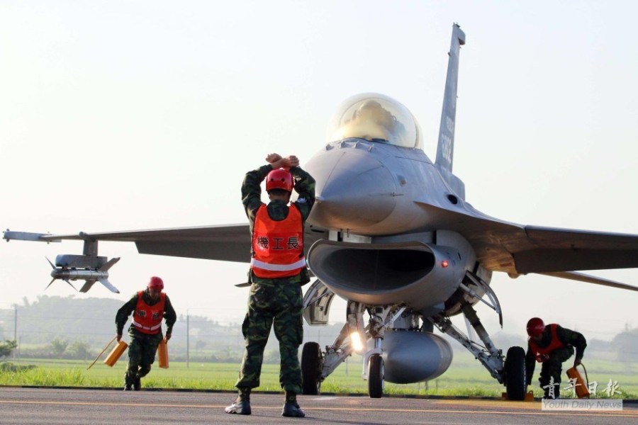 引导F-16战机出动。