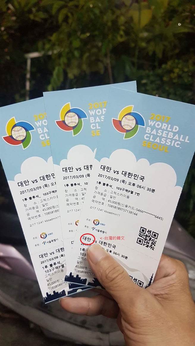 海外网2月27日电 据台湾“中时电子报”报道,依照惯例,台湾出席国际体育赛事都是用“中华台北”的名义出席,但近日有台湾网友发现,这次由韩国举办的2017世界经典棒球赛,不知出于“有心”还是“无意”,门票上竟然将“中华台北”印成“台湾”的韩文字样,变成了“台湾VS大韩民国”。对此,台湾网友也感到相当“意外”,但也有网友怀疑,可能是主办方使用Google翻译造成的问题。