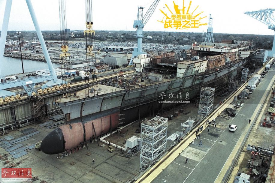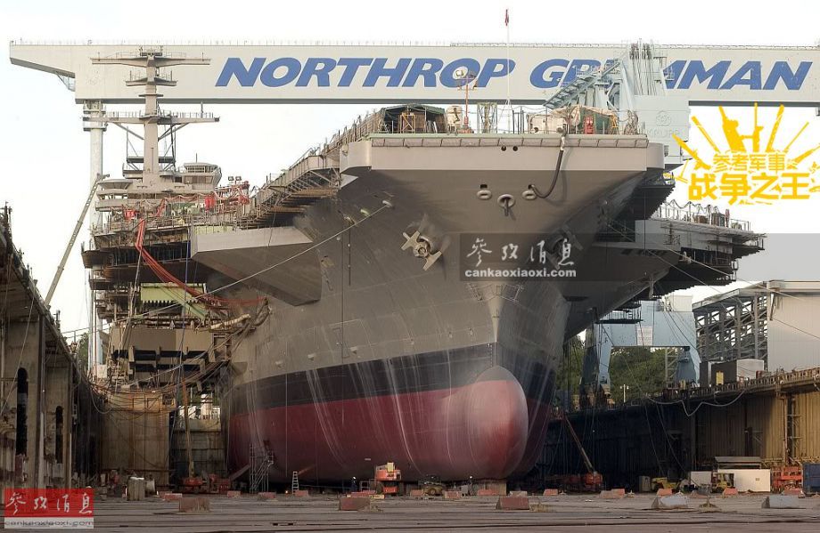 图为布什号(CVN-77,尼米兹级10号舰)核航母在12号船坞内进行舾装作业资料图,可见“蓝色巨人”龙门吊上醒目的“诺斯罗普 格鲁曼”标志。