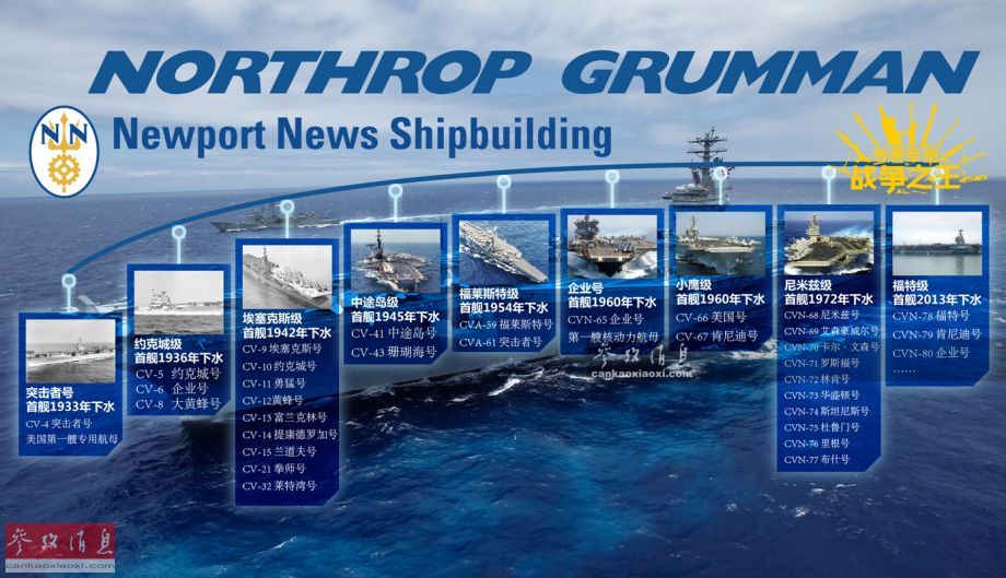 为美军造32艘航母:纽波特纽斯造船厂