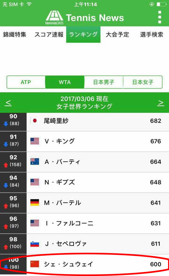 据台湾三立新闻网21日报道,20日深夜,谢淑薇在脸谱贴出日本网站列出的女子网球运动员世界排名。其中排在单打第100位的她,前方的旗帜不是“青天白日满地红旗”,也不是“梅花旗”,而是大陆的五星红旗,让谢淑薇感到“无言,也很不解”。