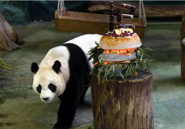 过生日的时候还有特别的惊喜。比如“团团”“圆圆”过8岁生日的时候,保育员用竹子摆成8字型的蛋糕,搭配猫熊爱吃的竹笋、红萝卜、还有窝窝头。12岁生日的时候,“圆圆”获得了一个像汉堡一样造型的圆形生日蛋糕,而“团团”则得到一个类似三明治造型的生日蛋糕。蛋糕上面,是由若干根短甘蔗组成的阿拉伯数字“12”,象征它们12岁的到来。