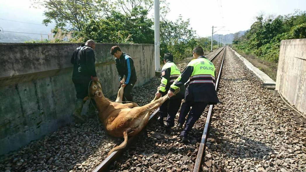 火车撞牛已不是新闻,但一次撞到6只,堪称史上最多!事故发生后台东县警局关山警察分局获报,随即由鹿野派出所副所长周平和率5位员警前往,协助台铁人员“抬牛”,清空轨道,让火车顺利通行;4621车次区间车12名旅客换乘301次自强号在10时37分返回台东车站。
