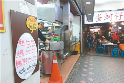 延三夜市所在路段长约1公里,虽然面积不大,老店却不少,叶家五香鸡卷、旗鱼米粉、大肠煎、红烧鳗、海鲜粥等,都是老饕最爱,常见排队人潮。过年后,延三夜市却面临“用工荒”,处处张贴招人公告,豆花、牛排、海鲜粥、蚵仔煎等业者都在征人,部分店铺甚至招人近1个月,却依旧乏人应征。