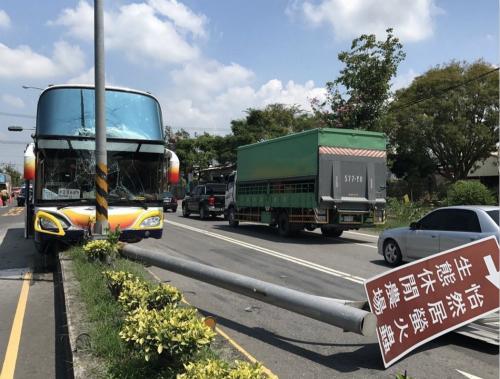一辆载着中国杭州陆客团的游览车,今天上午前往垦丁时,在屏东台一线新埤乡路段,因游览车司机恍神自撞安全岛,造成司机和5名女团员轻伤,警方将调查司机有没有疲劳驾驶。