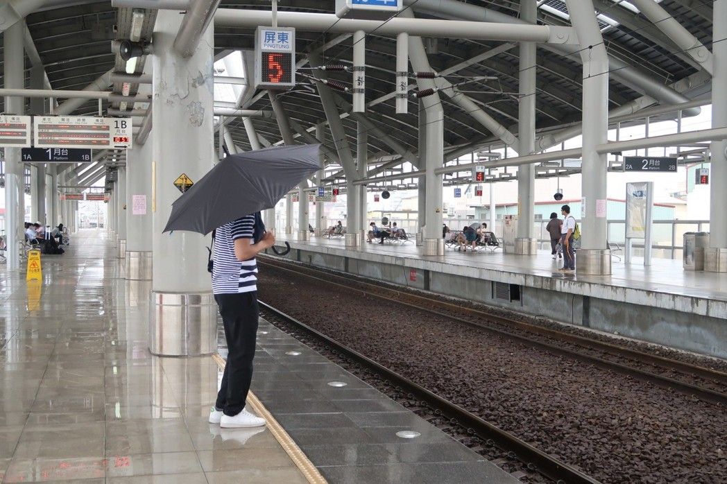 乘客在月台候车需要打雨伞(图片来源:联合新闻网)