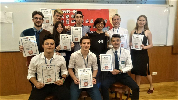 中国台湾网5月26日讯 “你好!我来自西班牙。”“我是法国人,我喜欢台湾的一切!”10位平均年龄17岁,来自巴西、法国与西班牙等8个国家的交换生,去年9月开始在台湾桃园阳明、武陵高中等学校交流、学习中文,武陵高中昨天(25日)帮他们举办中文班毕业成果展,展现所学,也互相道别。