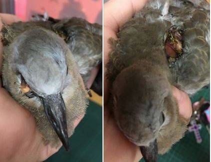 从连老师发文配图可以看到,这只小鸟的翅膀受伤,眼睛流出一大滴黄色水珠,令许多网友心疼,也纷纷留言表示,“这是斑鸠”、“好心有好报”,也有网友建议“以后发现野生鸟类受伤,最好马上直接通报野鸟协会来处理”。