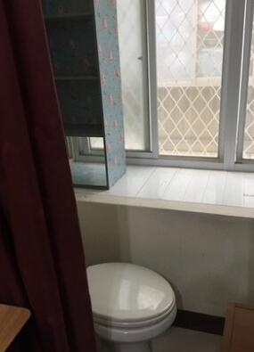 房间开门就能看到采用太空舱设计的淋浴间,床与起居空间在一起,更妙的是当询问马桶在哪?房东说在窗边,拉开床头帘后马桶就“华丽登场”!即晚上睡觉转个身就能看到马桶“遥望”着你,该网友下表示:“就是住在干湿分离的厕所里耶!”他还幽默地说:“真的是独立的‘卫’、‘浴’啊...房东没骗人喔。”