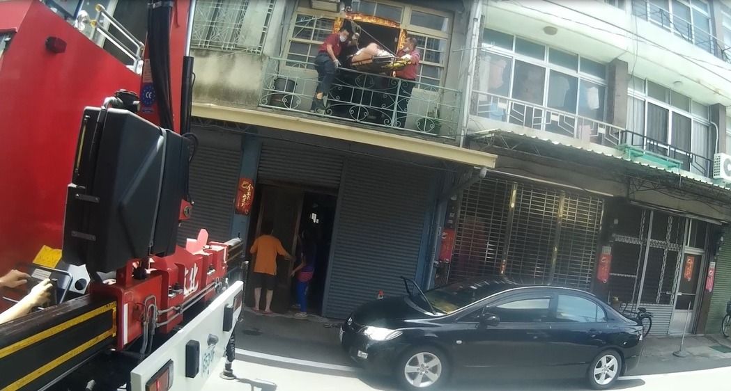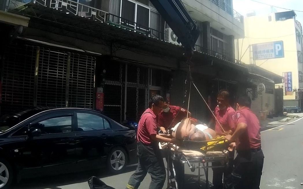 中国台湾网6月26日讯 据台湾“联合新闻网”报道,嘉义市一名38岁童姓男子昏迷在自家二层卧室床上,因楼梯间狭小,且童某体重约150公斤,故搬运困难。当地消防部门出动消防车辆并用吊臂将他从二层阳台吊至室外地面,经送医抢救后成功保住性命。