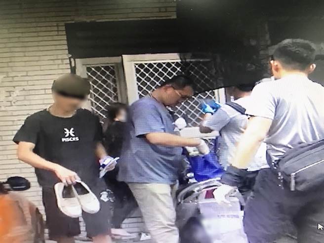 黄女(左二)躲在一旁,怀孕3个月被查获吸毒。(图片来源:台湾“中时电子报”)