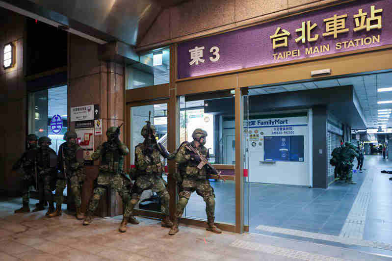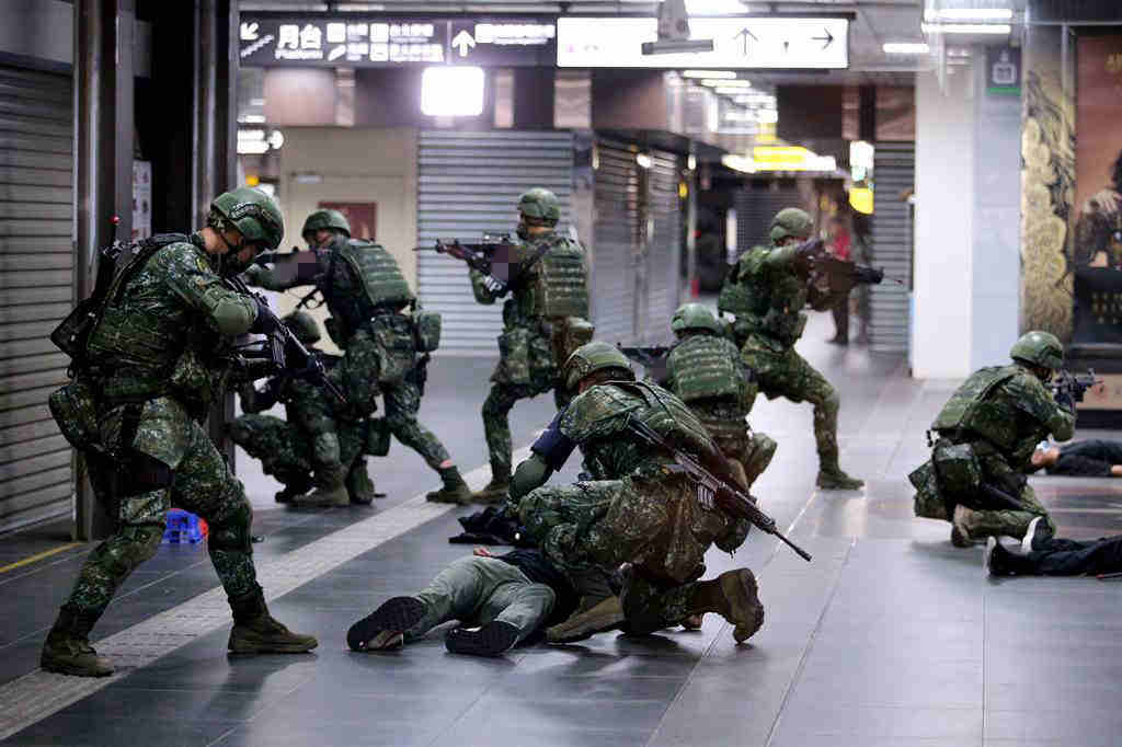 “汉光演习”模拟台北车站遭恐怖分子袭击。 图片来源:台湾“中时新闻网”黄世麒摄