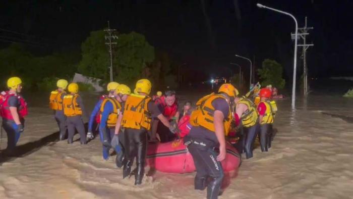 10日下午2点后,嘉义地区遭雷暴雨侵袭,包括火车站等多地被水淹,多处道路中断、多辆车抛锚、多名驾驶受困。消息称,有宫庙被淹水近1楼高,还有许多民众受困,当地消防单位派出橡皮艇连夜救援,至晚上8时共救出32人。但在清晨,仍发现有一男一女老年人被困淹水的车中,不幸离世。