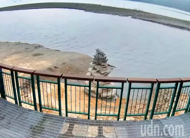 日月潭管理处表示,日月潭水位下降,也裸露出不少的沙洲,而九蛙叠像旁出现一条水道,吸引许多民众为观赏九蛙。