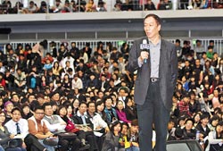 鸿海集团总裁郭台铭14日在逢甲大学演讲畅谈企业及两岸等议题,吸引数千名学生到场听讲。(图片来源:台湾《中国时报》)
