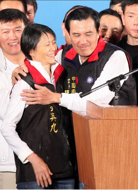 马英九用力的抱着夫人周美青表示感谢。(图片来源:台湾《中时电子报》)