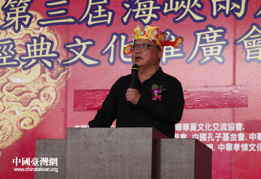 济南市教育学会参访团团长邹卫平在第三届海峡两岸经典文化推广会演致辞(中国台湾网 邢同林 摄)