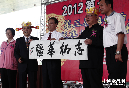 中国台湾网5月28日台中消息 5月,万木葱茏、百花竞艳,由济南市教育学会、台湾中华华夏文化交流协会、《两岸关系》杂志社、中国孔子基金会共同主办的“和谐中华 第三届海峡两岸经典文化推广会演”27日在台中市隆重开幕。济南市、厦门市、香港、澳门等城市同步举行。济南市教育学会参访团一行32人赴台中出息了开幕式及相关活动。开幕式上两岸数万人齐诵中华文化经典,台中市市长胡志强、济南市教育学会参访团团长邹卫平等分别致辞。